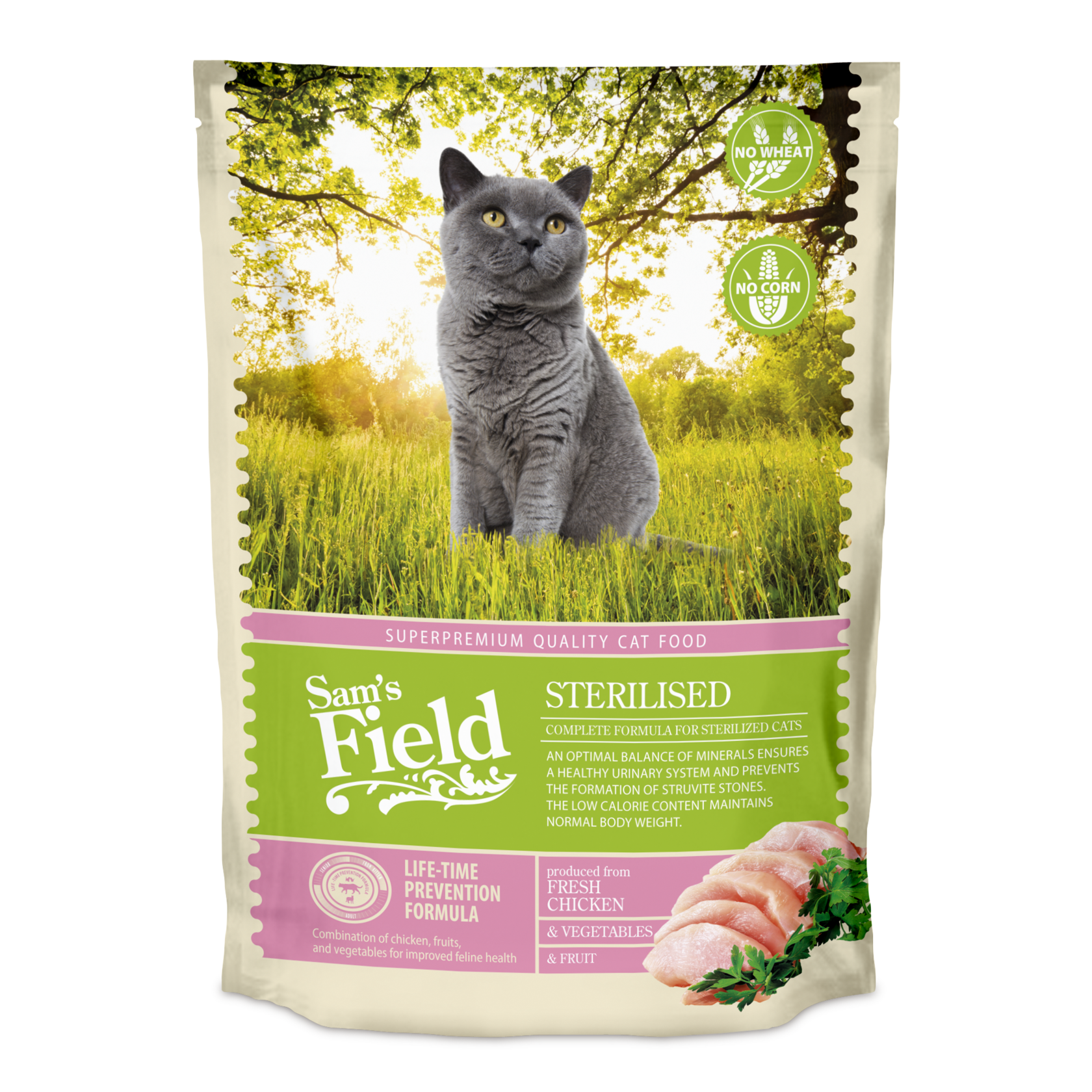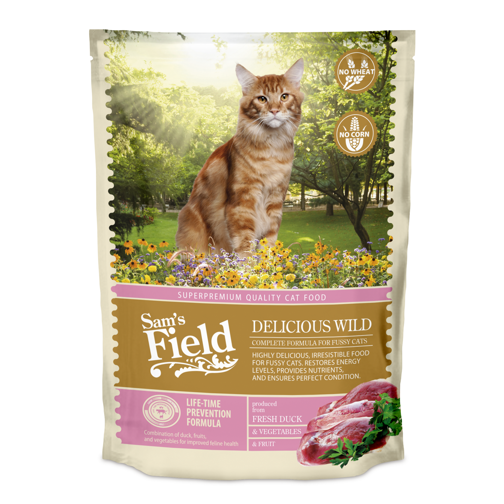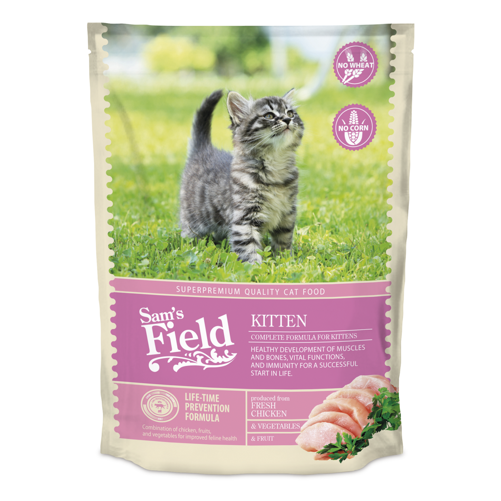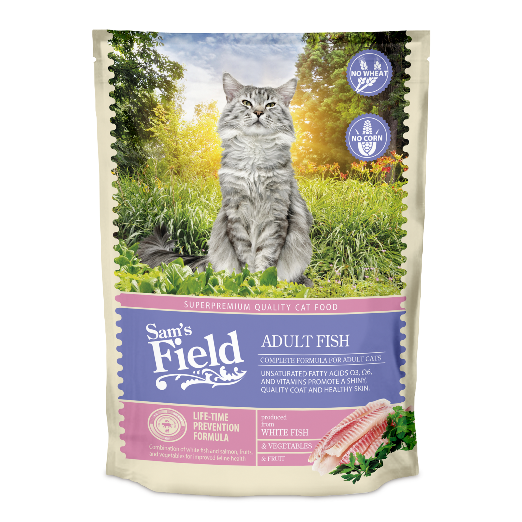 Суперпремиальная полнорационная формула кормов Sam's Field super-premium учитывает естественные потребности кошек в питании на различных этапах их жизни. Уникальный состав рецептов с большим количеством мяса и животных белков в сочетании с фруктами, овощами, растительными экстрактами и функциональными компонентами способствует правильному пищеварению и эффективному использованию питательных веществ организмом кошки.